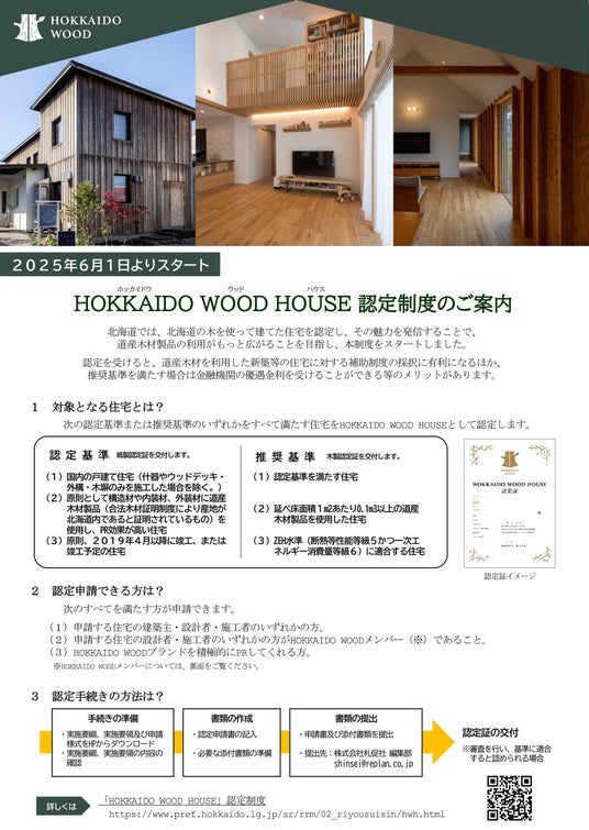 北海道では、道産木材の利用促進とブランド価値の向上を図るため、道産木材を使用した住宅を「HOKKAIDO WOOD HOUSE」として認定する制度を創設し、2025年6月1日より運用を開始しました。
