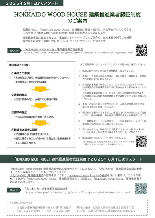 制度の詳細は、「HOKKAIDO WOOD HOUSE」認定制度HP