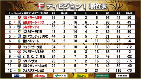 詳細はこちら>>https://www.fleague.jp/score/teamrank.html