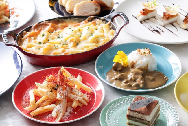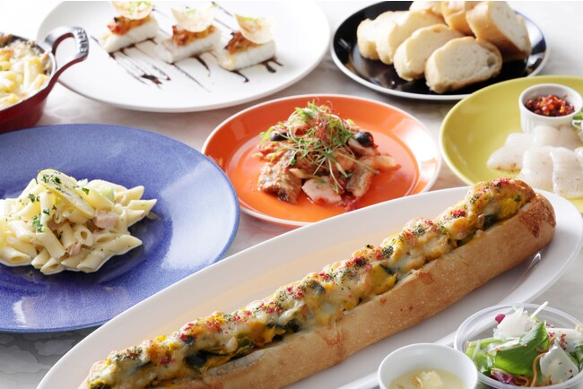 ■温製料理:南瓜サラダとロースハムのサンドイッチ/ふるふるポテトフライ(チリ&レモン風味、ケイジャンスパイス風味、カマンベール風味)/ツナと夏野菜 懐かしマカロニグラタン/鱸のオーブン焼き ラタトゥイユとジャガイモチップをのせて/豚ロース肉の低温ロースト 平成ハニーマスタードソース/ザ・フレンチ飯 牛肉のカルボナード ストリングス風厚切りバケットを添えて/ザ・イタ飯 サーモンとレモンの塩麹クリームペンネ/平成ビーフトマトカレー オニオンとアーモンドライスで