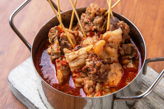 肉を知り尽くしあらゆる部位を大切に使う肉バルが、肉への愛情を注ぎこんだ特製メニュー。中国屋台で人気の中国風「肉おでん」を、昨年より続く“痺れる”辛さの麻辣スープで仕上げました。サワー系のお酒が進むこと間違いなしです。