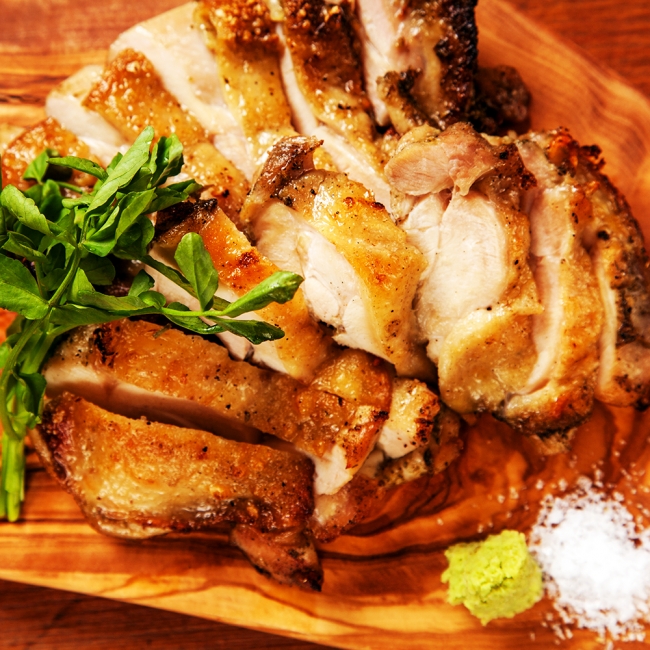 徹底した飼育管理のもとで育てられた茨城県産の美明豚。生産者の思いを受け継ぎ、48時間=丸2日、香草でじっくりマリネして手間暇と愛情をしっかり漬けこんだ肉には骨の髄まで旨みが浸透しているかのよう。豪快にかぶりつけば、骨の周りの肉が最も美味しいとの通説にもうなずけるはず。