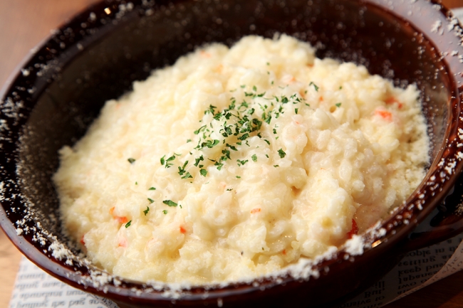 ワインの最強のパートナー・チーズをたっぷり使用したリゾットは、お酒の席のシメにぴったり。ホッと内臓が温まるような温度感も魅力ですが、一匙口に運べばチーズが放つ濃厚な味わいと絶妙な塩気が、またアルコールを呼びそうな危険性もあり…悪魔的魅力を持つシメに、飲み過ぎ注意です。