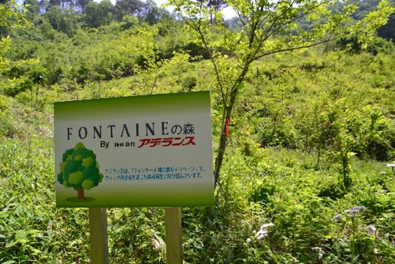「フォンテーヌ緑の森キャンペーン」は、期間中にウィッグ回収にご協力いただいたお客様の売上の一部を利用し苗木の植林を行うものです。植林支援は、環境コミュニケーションを推進する「ツバルの森」を通じて、山梨県内の山林地域に「フォンテーヌの森」を設置し苗木を植林しています。既に1,200本以上を植林しており、2009年に初めて植えた苗木は、現在では大人の背丈を超えて2メートルほどにまで成長しています。