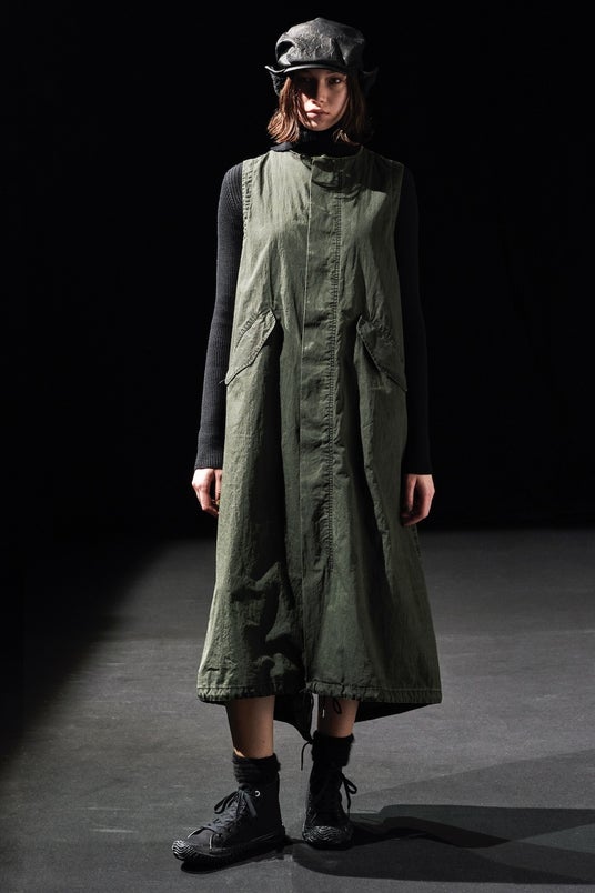 モッズコートを意識したフィッシュテールとフラップが特徴のドレス。羽織としても活用できます。