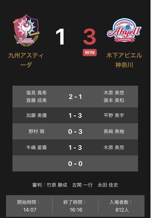 2023-02-19 一般社団法人Tリーグ ノジマ リーグ 2022-2023シーズン 公式戦 2月19日開催 九州アスティーダvs木下アビエル神奈川 試合結果 Tweet 九州アスティーダと木下アビエル神奈川の試合は、3-1で木下アビエル神奈川が勝利しました。 企業プレスリリース詳細へ PR TIMESトップへ 公式ツイッター Follow @Straightpress 最新情報をTwitterで受け取ろう! 公式フェイスブックページ 最新情報をFacebookで受け取ろう! 前の記事 一覧へ戻る 次の記事