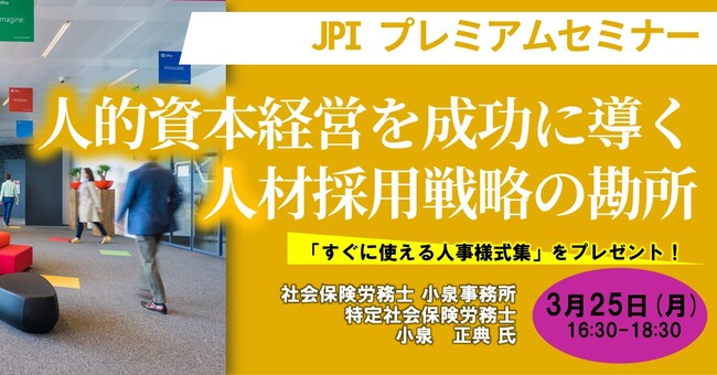 JPI(日本計画研究所)は、社会保険労務士 小泉事務所 特定社会保険労務士 小泉 正典 氏を招聘し、人手不足を感じている企業で「なぜ応募が来ないの?」「どのようにすれば応募が増えるの?」といった対処法を含めた人材採用戦略について詳説いただくセミナーを開催します。