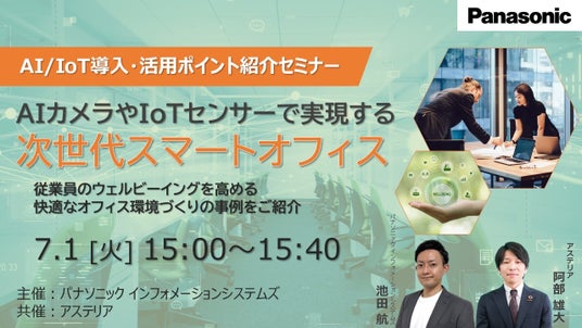 本セミナーでは、AIカメラやIoTセンサーを活用した次世代オフィスの事例を交え、快適なオフィスづくりのポイントをご紹介します。