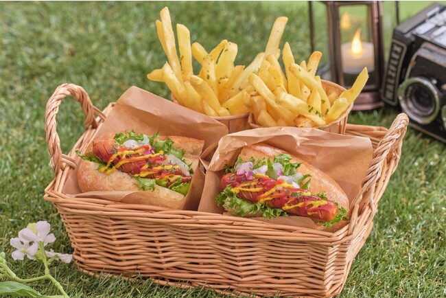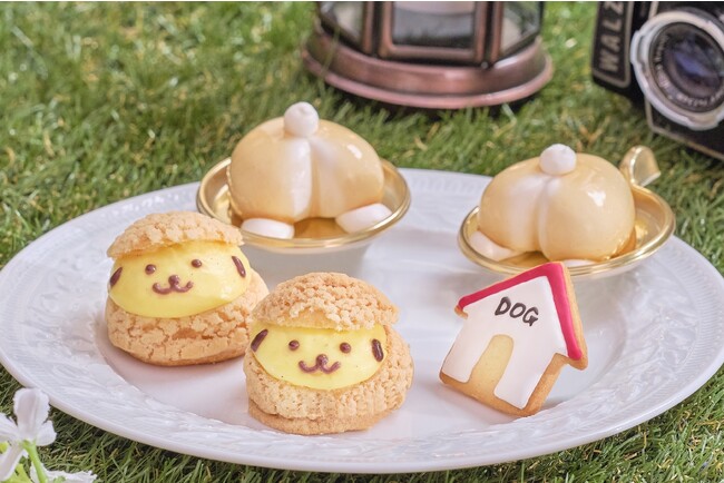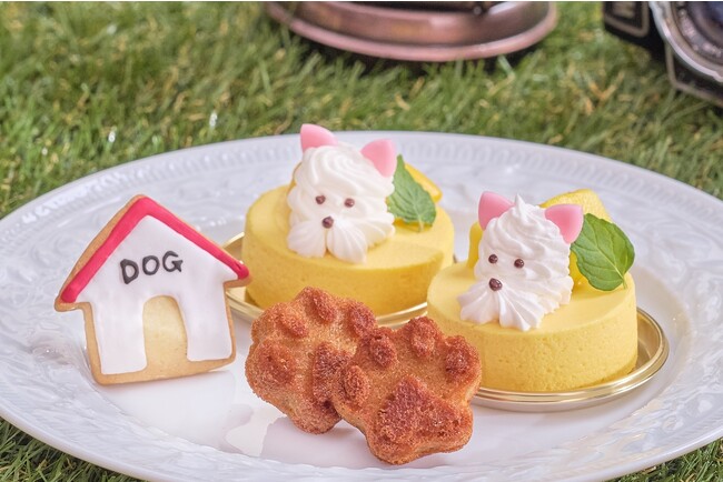 ダックスフント、コーギー、ボストンテリア、マルチーズ、シュナウザーといった愛犬モチーフのキュートなスイーツに、マンゴーやパッションフルーツなどのサマーフルーツを使用し、夏らしくさっぱりと仕上げました。また、アーモンドの香りが漂う”にくきゅう”型のフィナンシェ、“ほねのおやつ”型のベリーバターサンドなど、愛犬家の心をくすぐるキュートなスイーツに加え、バスケットで提供されるホットドッグやフレンチフライ、コーヒー・紅茶のフリーフローとともにご堪能いただけます。