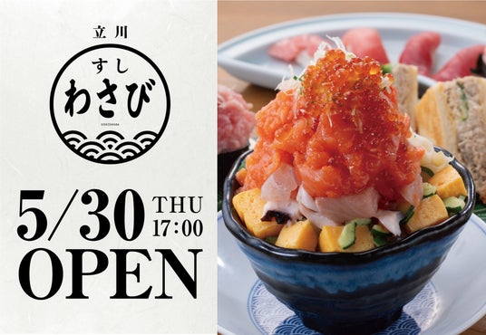 こだわりの本鮪を使った握り寿司や、ひとクセある海鮮料理を楽しめる「すしわさび」。この度、「神保町 すしわさび」に続く2号店となる「立川 すしわさび」を、2024年5月30日(木)東京・立川にオープンいたします。
