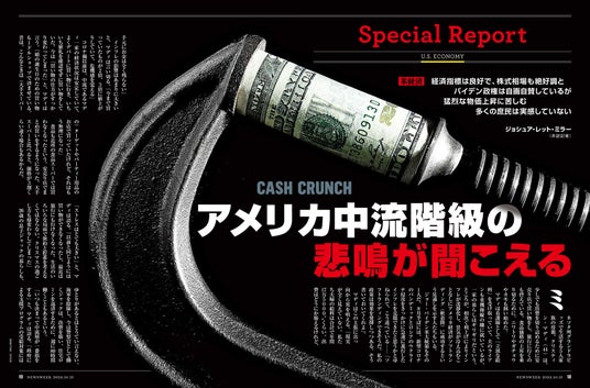 【編集長から】アメリカの中央銀行である連邦準備理事会(FRB)が先月、4年半ぶりとなる利下げを発表し、しかもその下げ幅が0.5パーセントポイントと大きかったことが市場に衝撃を与えました。インフレが沈静化し、高金利を続けると景気後退につながりかねないゆえの判断ですが、逆に言えばアメリカ経済は一歩間違えば失速しかねない危うい状態とも言えます。実際、失業率は年初の3.7%から4.2%に上昇。ダウ平均株価など経済指標は好調ですが中間層にはその実感が乏しく、日用品の高騰に倹約生活を余儀なくされています。不動産価格も高騰し、年収15万ドル以上でも生活が不安と答える人が32%も。11月の大統領選に確実に影響するアメリカ経済の真実の姿を、10月15日号の特集「米経済のリアル」で追いました。(長岡)