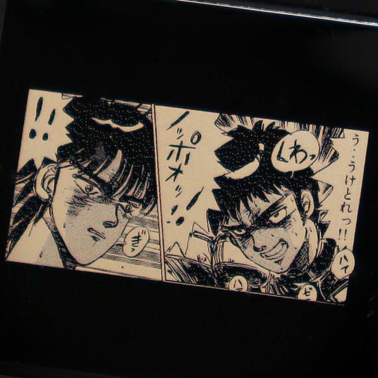『バリバリ伝説』名シーンをレーザーで表現。プリントでは表現できない繊細で高級感のある仕上がりとなっております。光沢感のあるガンメタリックに施された特別な加工は、触れた瞬間に感じる重厚な質感が魅力です。