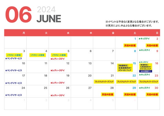 「BBQビアガーデン北海道」6月イベントカレンダー