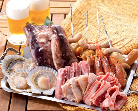 北海道産地直送の新鮮な魚介類をはじめ、道産ひこま豚や粗挽きフランク串、ジンギスカンなど北海道を満喫できる食材をバーベキューやビュッフェ、アラカルトメニューでお楽しみいただける「BBQビアガーデン北海道」。