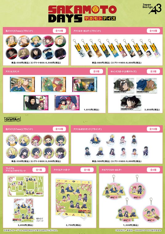 TVアニメ『SAKAMOTO DAYS』の新作グッズが登場! 現在お取り扱い中の通販サイト「eeo Store online」に加えて、明日4月12日(土)からeeo Store 池袋本店での店頭販売もスタートします。