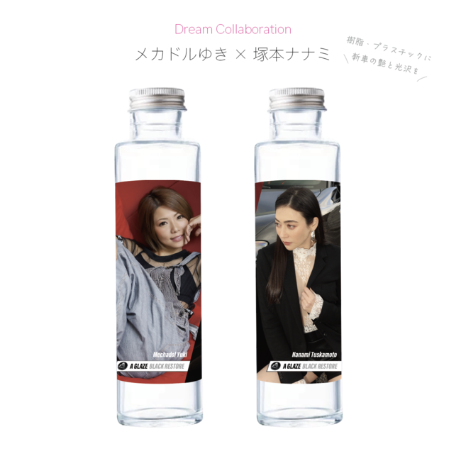 スーパーカーから、世界の航空会社、高級ヨットメーカー、そして米軍や新幹線のコーティングまで、世界が認めたAグレーズ(総輸入元:ファインピース株式会社)は、日本で最も有名な女性整備士とも言われ、YouTuberとしても人気の「メカドルゆき」と、モデル・タレントとしてTV・CM・イベントなどでも活躍するレーシングドライバー「塚本ナナミ」とのコラボ企画として、限定パッケージの販売を開始した。