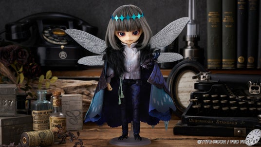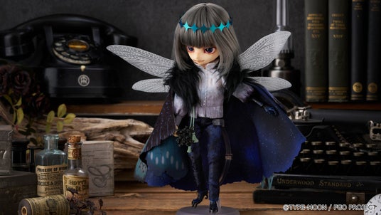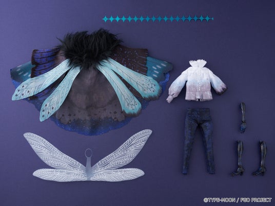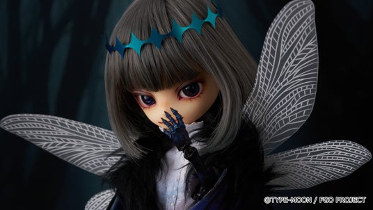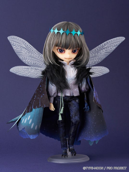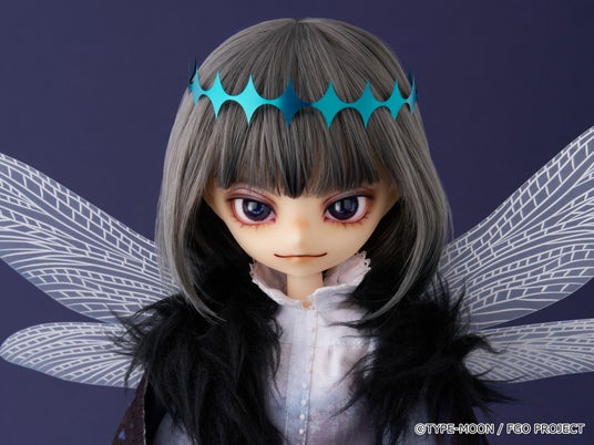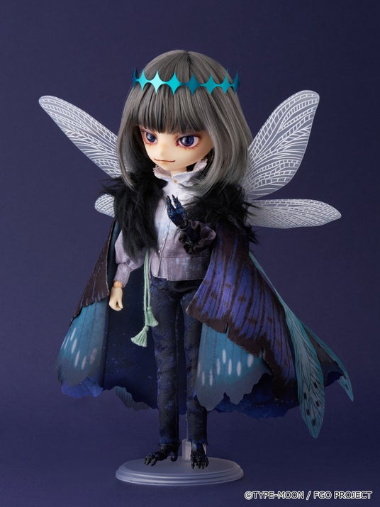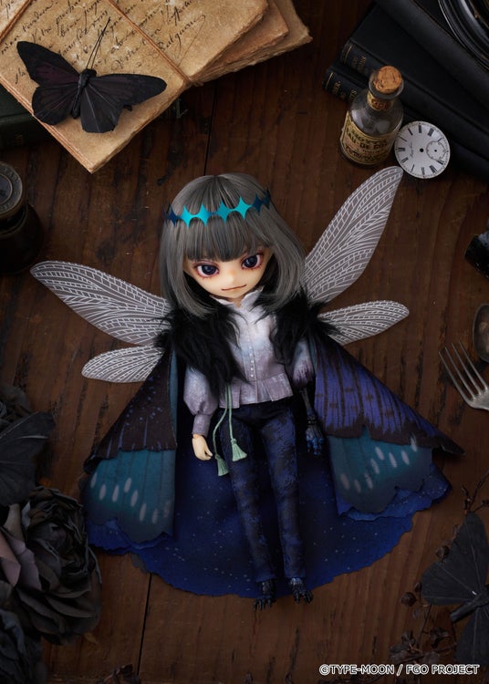 闇夜にゆらめくようなグレーのヘアカラーに、新規デザインによるメイクや染色をしたようなブラウス、幾重に重ねられた異なる素材の翅など忠実に再現。さらに昆虫のようなフォルムの左腕と脚は植物少女園の石長櫻子氏による新規造形です。どうぞお迎えください。