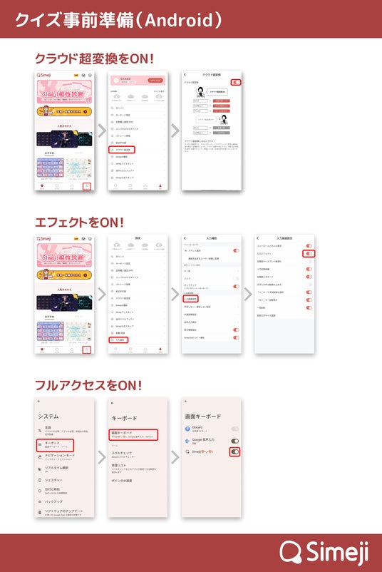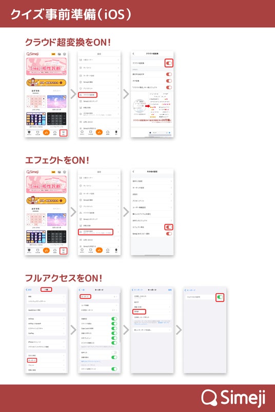 ※Simeji公式XアカウントからのDMが受け取れるよう、設定のご確認およびSimeji公式Xアカウントのフォローをお願いいたします。
