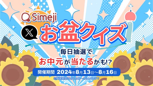 バイドゥ株式会社(本社:東京都港区、代表取締役社長:Feng Jiang)が提供するきせかえ顔文字キーボードアプリ「Simeji」(iOS、Android版)は、お盆に合わせて初めてSimejiのキーボード上でのクイズキャンペーンを開催いたします。抽選で合計16名様にお中元をプレゼント!ぜひこの機会にSimejiの機能を体験してみてください!