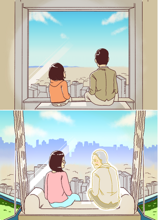 ‣イラストレーター織田博子さんによって生まれたイラスト:父と私とサンシャイン
