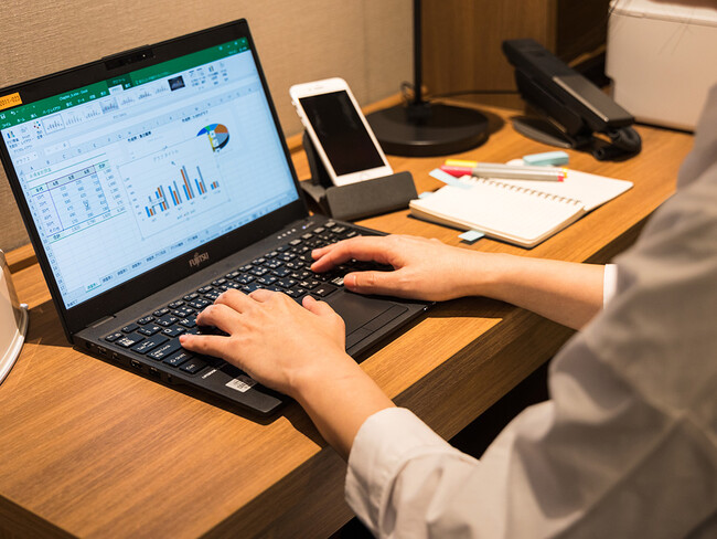 ビジネスパーソンに嬉しいテレワークに特化した客室タイプ「Biz style」を8室新設。快適なビジネス環境を提供するための備品を揃えています。