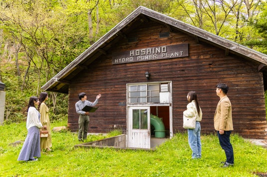 木々が美しい新緑の季節にエリア内を散策しながら、サスティナブルな取り組みを案内します。このツアーでは、これまで一般公開してこなかった星のや軽井沢と水力発電所に立ち入ることができます。