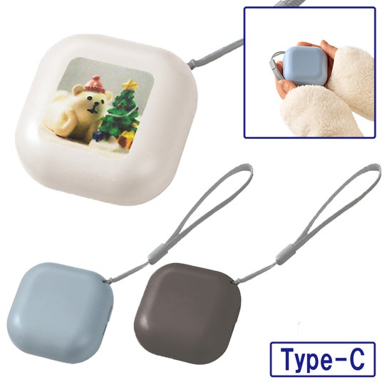 温度は**45℃(低温)/55℃(高温)**の2段階調節が可能。両面がしっかり温まる仕様で、寒い日の通勤・通学や屋外イベントでも心強い味方になります。連続使用時間は約1~2時間(※使用環境により異なります)。Type-Cコード付属で、約3時間で充電完了。ストラップ付きなので持ち運びにも便利です。