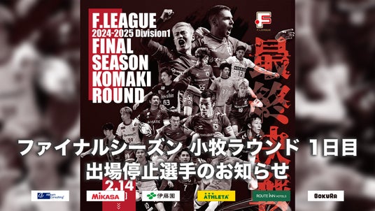 Fリーグ2024-2025 ディビジョン1 ファイナルシーズン 小牧ラウンド 1日目(2月14日)の出場停止選手についてお知らせいたします。