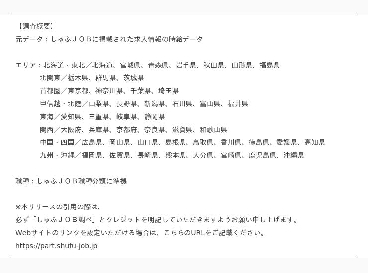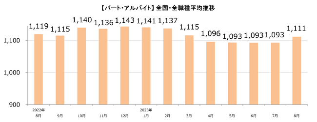 ビースタイルグループで求人サイト『しゅふJOB』を運営する株式会社ビースタイル メディア(本社:東京都新宿区、代表取締役社長:石橋聖文)は、掲載された求人情報の時給データから算出した『平均時給』の2023年8月分を集計しました。