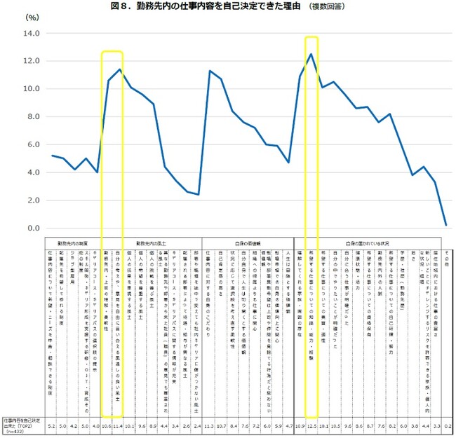 ◆はたらき方を自己決定できた理由には、勤務先の風土や周囲を気にしない価値観が上位に