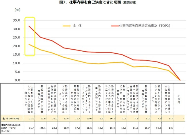 ◆仕事内容を自己決定できた層が自己決定できた場面の1位は、「仕事を通じた自身のスキルおよび経験蓄積」