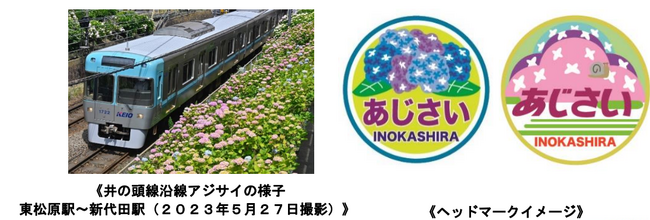 京王電鉄株式会社(本社:東京都多摩市、取締役社長:都村 智史)では、井の頭線の線路わきに植えている24,000株を超えるアジサイがまもなく見頃を迎えます。アジサイが見ごろの期間にあわせ、アジサイをデザインしたヘッドマーク付き列車を5月28日(日)から運行しています。