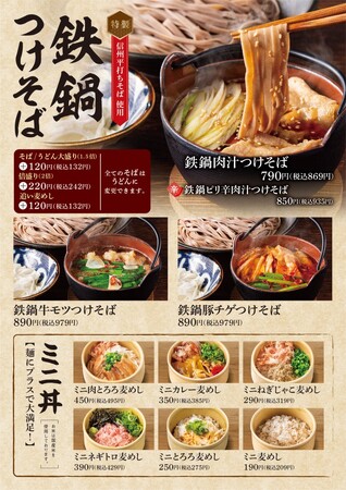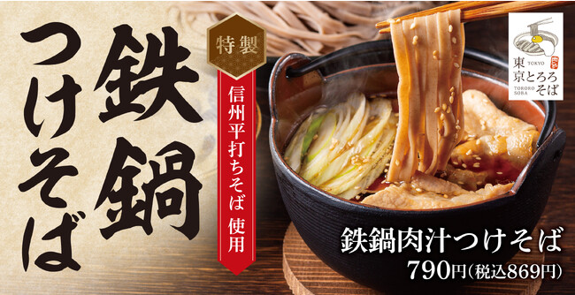 千切りとろろののどごしと、信州平打ちそばの食べ応えで頑張る人の活力になることを目指す「東京とろろそば」に、秋冬の新グランドメニューとして「鉄鍋つけそばシリーズ」を2023年10月26日(木)より全店で販売開始いたします。