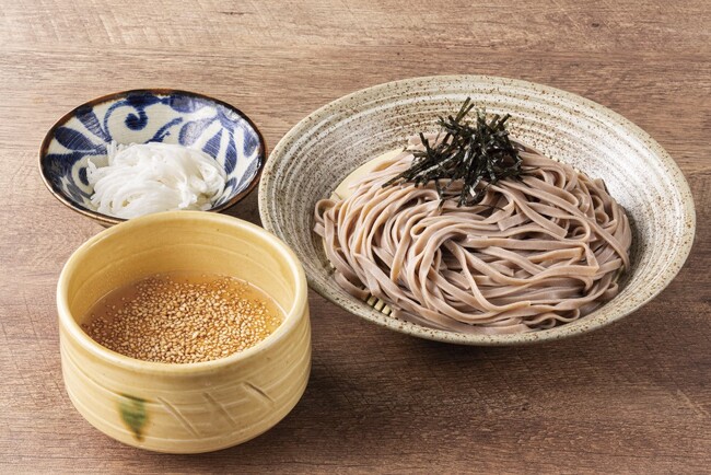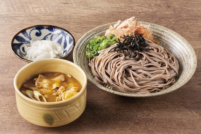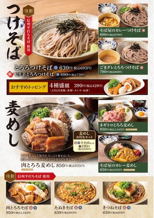 また、2022年4月からグランドメニュー入りした「つけそばシリーズ」にもこの時期に相応しい新作として、出汁の風味と程よいとろみが平打ち面によく絡む「そば屋のカレーつけそば」と、胡麻の甘味とコクが千切りとろろと相まって満足度が高まる「ごまダレとろろつけそば」の2種類が仲間入りします。
