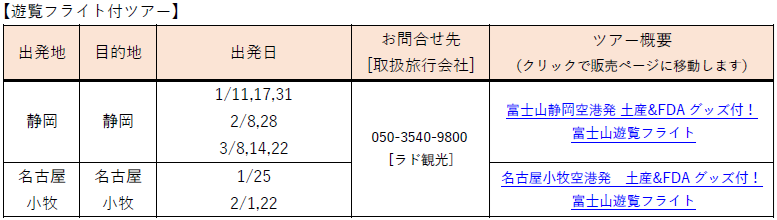 ※上記は、現在一般販売している旅行ツアーの一部となります。全てのチャーター便・遊覧フライトの運航予定を記載しているものではありませんのでご了承ください。