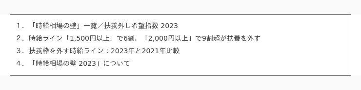1.「時給相場の壁」一覧/扶養外し希望指数 2023