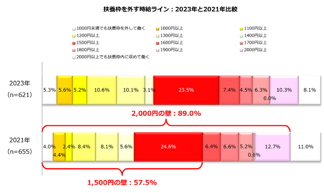 3.扶養枠を外す時給ライン:2023年と2021年比較