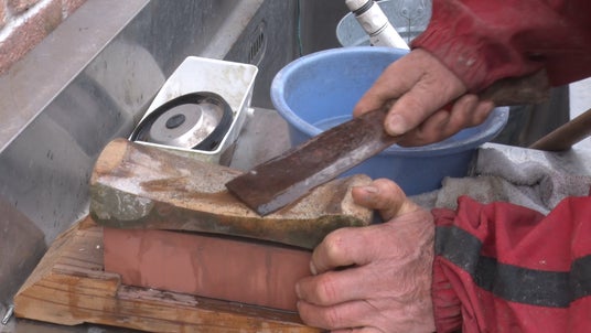 まずはなおみさんのお父さん、じぃじの姿が。手には錆びついた鎌など、農作業で使う道具が。この日は、来るべき春に向けて道具をメンテナンスするそうです。じぃじと言えば「昔はこんな風に使っていたんだよ」と、様々な農具を器用に使う姿が印象的!この日も壊れた金ヅチを修理したり、刃物を一つ一つ丁寧に研いでいったり…"じぃじの教え"必見です!