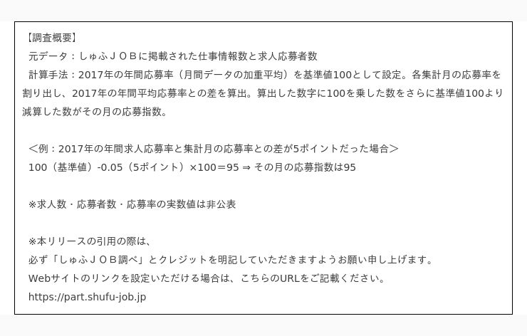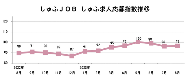 ビースタイルグループで求人サイト『しゅふJOB』を運営する株式会社ビースタイル メディア(本社:東京都新宿区、代表取締役社長:石橋聖文)は、掲載求人数と応募者数から算出した「しゅふ求人の応募指数」を集計しました。