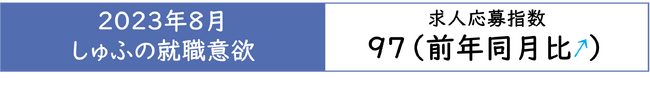 例年、夏休み期間の8月は、子育て層の就職活動が鈍化することに伴い、応募指数は下降する傾向にあるが、今年は上昇した。その要因として、コロナ禍において、2020年8月以降、求人数が急増する一方で応募数は緩やかな伸びにとどまっていたが、2023年に入ってからは、求人数が落ち着き応募数が増加したため、求人数と応募数の需給バランスが整ってきたことが考えられる。
