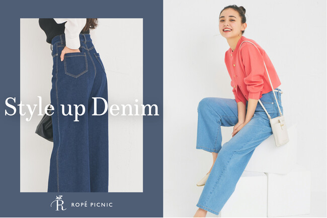 春に向けて少しずつ薄着になる時季、気になるのは「着やせ効果」ではないでしょうか。合わせやすく万能なアイテムながら、身体のラインがそのまま出るため、かっこよく履きこなすのが難しい「デニムパンツ」。今回ROPE' PICNICが開発したデニムパンツは、ウエストから下腹部分までの太いゴムでウエスト周りをホールドし、腰回りのスタイルアップを叶えてくれるので、トレンドのクロップド丈も自信を持って楽しめます。シルエットはこなれ感の出るカービーデニムと美脚効果のあるワイドデニムの2型を展開。