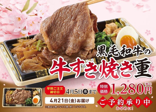 「黒毛和牛の牛すき焼き重」(ホームページでも受付中:https://www.watami-takushoku.co.jp/item/3107)