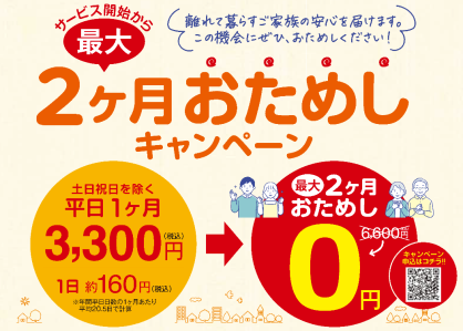・利用料金:無料(本キャンペーン適用開始月および次月における利用料金が無料になります)