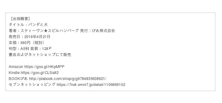 インスタフォロワー14万人を超える人気イラストレーター・スティーヴン★スピルハンバーグ( @steven_spielhamburg )初書籍『パンダと犬』が発売3日で3刷決定と大好評。さらに、電子版の配信書店がLINEマンガほか続々決定いたしました。