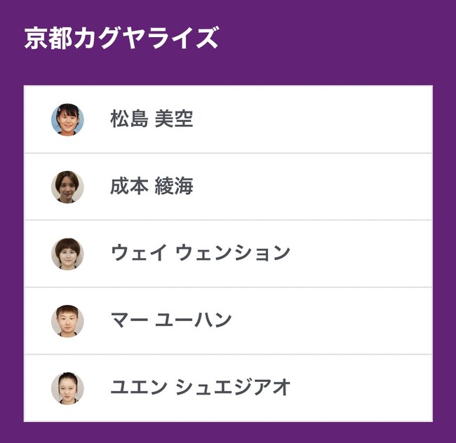 トップおとめピンポンズ名古屋vs 京都カグヤライズ