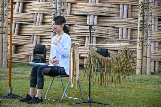 ・夕暮れの「きらめく丘」前での尺八・篠笛アーティスト 山口 整萌 氏 による尺八演奏