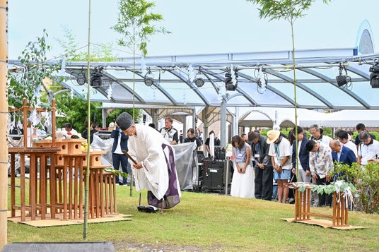 オープニングセレモニーにおいては、プロジェクト実行委員会の関係者と本プロジェクトのご支援者約100名が参加、岸和田市 永野耕平 市長、白浜町 大江康弘 町長にも来賓としてご臨席いただき、ご参加の皆様と共にアートの完成に感謝し、今後の繁栄を願う神事を執り行いました。