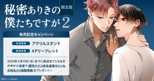 株式会社TORICO(本社:東京都千代田区、代表取締役社長:安藤拓郎)が運営するホーリンラブブックスにて、櫻井ナナコ先生『秘密ありきの僕たちですが(2) 限定版』発売記念キャンペーンを開催いたします。