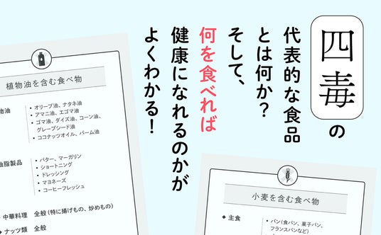 四毒とは小麦、植物 油、乳製品、甘いものを指します。これらが健康を害すもとなのです。 本書では、四毒がなぜ体に毒なのかについて、エビデンスや歴史的背景を詳細に解明したうえで、それでは何を食べればいいのかをわかりやすく示しています。 「食べるものがない」と思う人もいるかもしれませんが、そんなことはありませ ん。日本人ならば、和食を食べればいいのです。いま話題沸騰の四毒抜きの効果を実感していただけるでしょう。