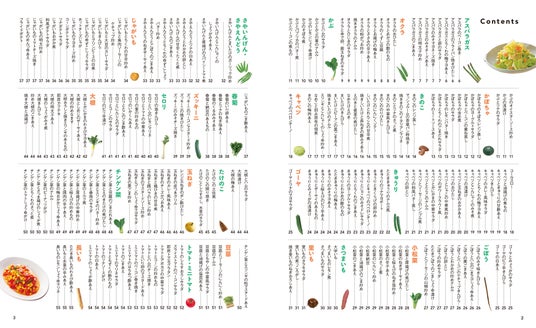 「アスパラガス」のレシピから始まり、「れんこん」のレシピまで、野菜名の50音順でレシピを掲載しているので、食べたい野菜、使いたい野菜の名前でレシピがすぐ探せます。